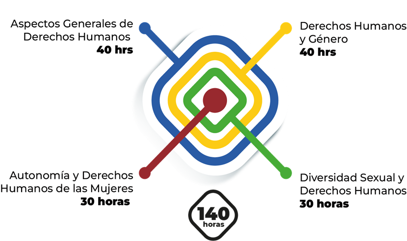 Objetivo: Comprender los derechos humanos desde la perspectiva de género, a través de la revisión de los estándares internacionales en esta materia, a fin de reconocer su quehacer como actores fundamentales en la construcción de una sociedad igualitaria entre mujeres y hombres, en la que cada persona pueda ejercer sus derechos y acceder a las mismas oportunidades para su desarrollo personal y una vida digna.
