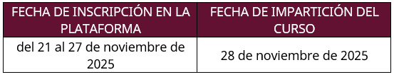 Calendario del curso
